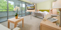 Appartements (Belegung maximal 5 Personen): ca. 55 bis 67 m², Klimaanlage, Sitzecke. Junior-Suiten (Belegung maximal 4 Personen): ca. 28 bis 39 m², mit Terrasse.