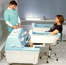 Die Wassertemperatur beträgt ca. 36-37 °C. Nachdem der Kurpatient Unterarme und Unterschenkel in die Wannen getaucht hat, wird der Stromfluss eingestellt, danach wird der schwache Gleichstrom eingeschaltet. Die Stromstärke wird langsam verstärkt, bis der Patient ein gut erträgliches Prickeln auf der Haut verspürt.